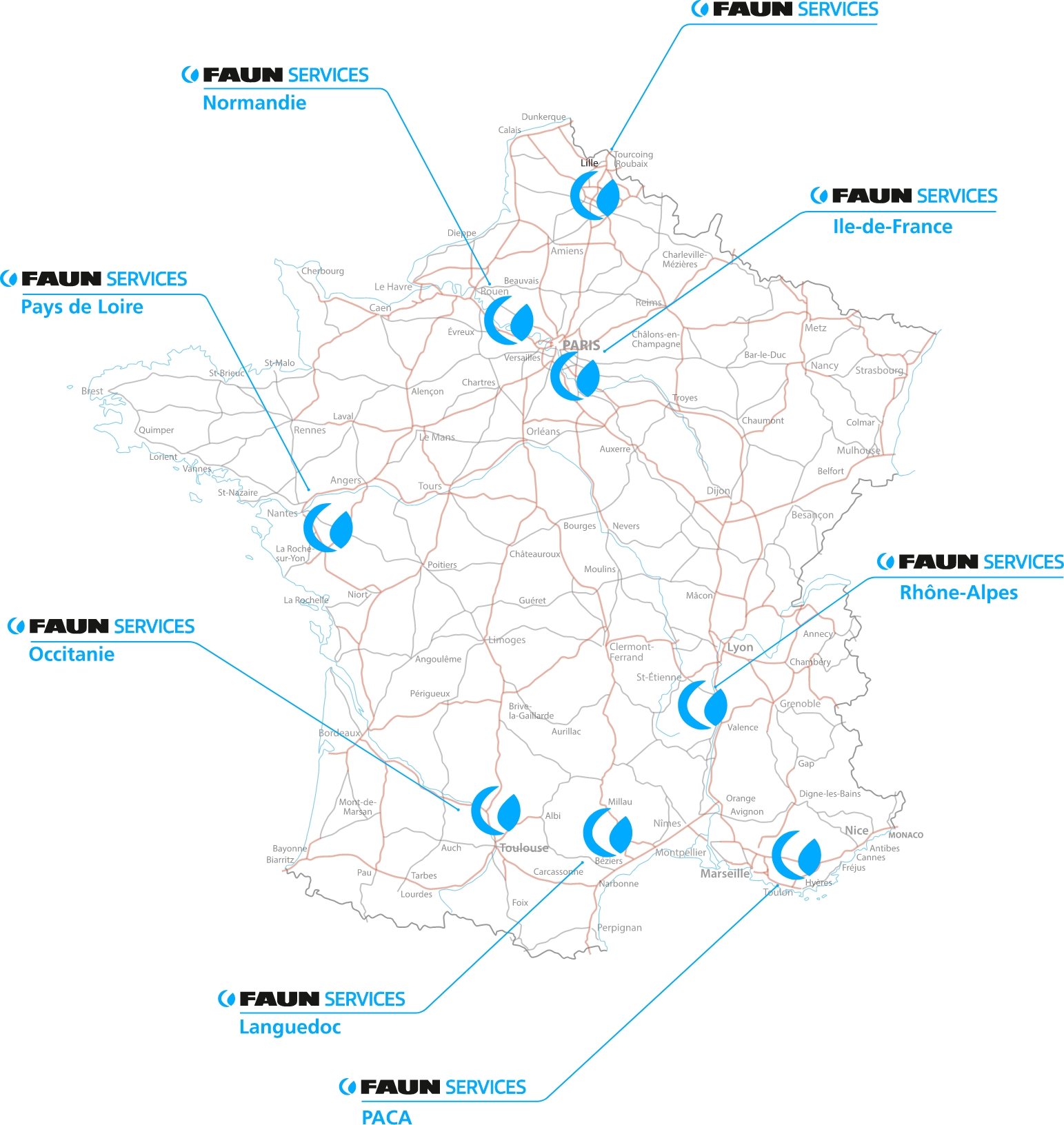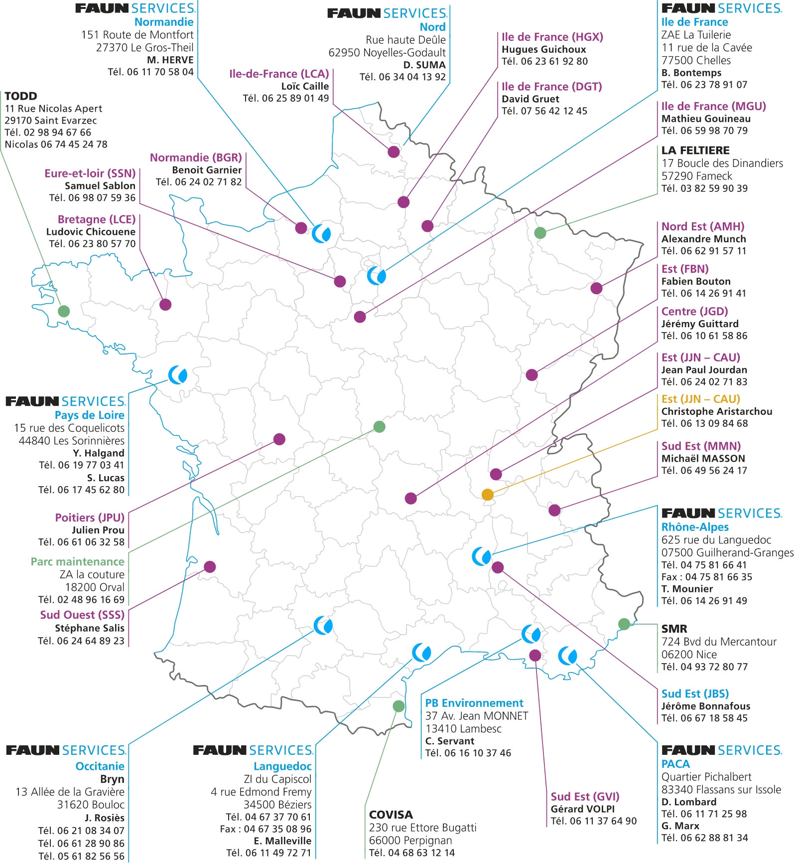 FAUN SERVICES Un organisme de formation pour nos clients, un SAV, 18 Techniciens SAV présents dans toute la France, une assistance d’experts, notre service de vente de pièces détachées en ligne et par téléphone. RÉSEAU FAUN SERVICES 2023 Produits Produits