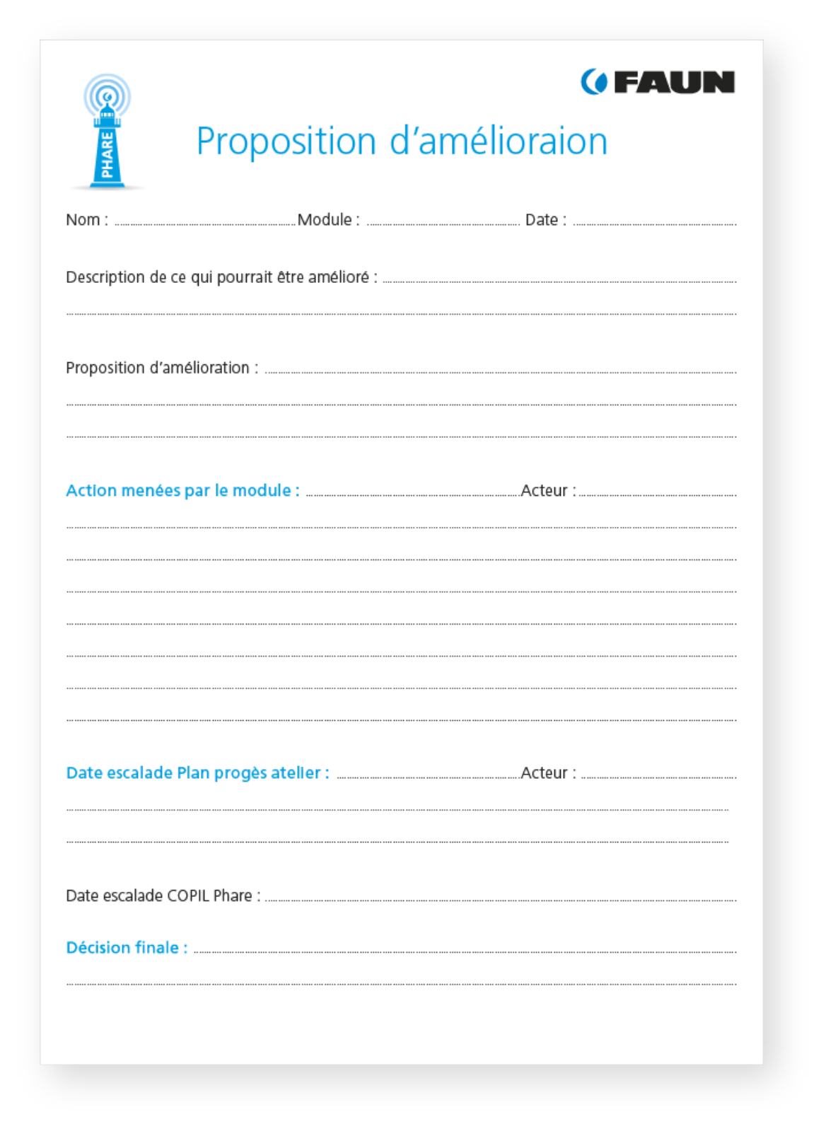 Chaque opérateur (salarié ou intérimaire) a la possibilité de faire remonter un dysfonctionnement ou une amélioration via les fiches de proposition d’amélioration.